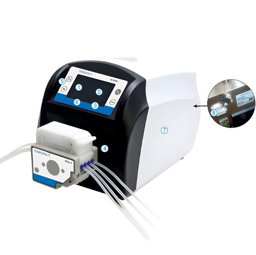 The PH15T pump head features a rear cover design to improve product integrity. It has a sleek, elegant appearance, with more dynamic curved lines. An independent small faceplate has also been added to the rear cover for a more standardized product design.The pump head is equipped with an adjustable pressure tube gap, which can be modified by turning the screws on top of the pump head. This allows the pump head to be compatible with tubes of various specifications, enhancing pressure application, improving versatility, and extending the tube's service life.
